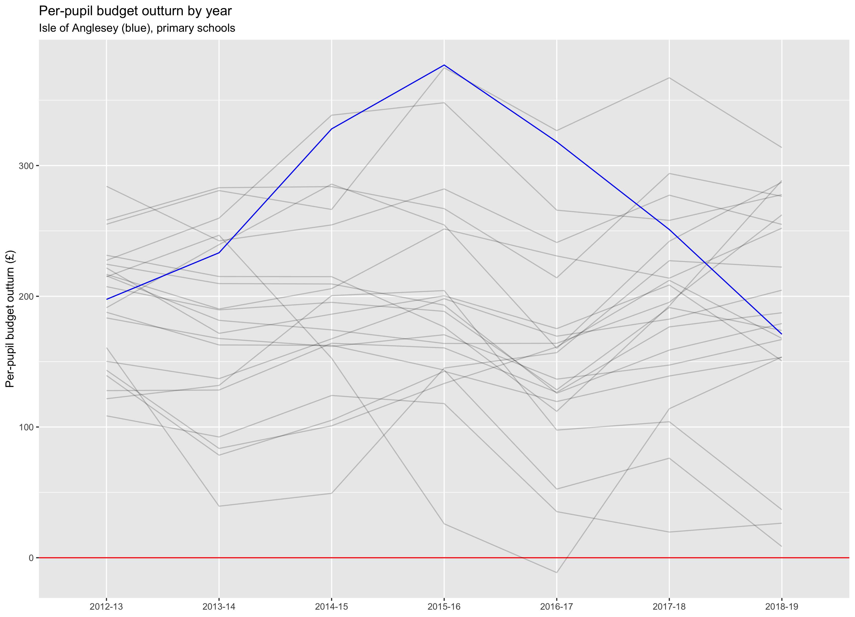 Isle of Anglesey's primary school sector has an average per pupil surplus of £170.98, ranking 14th in Wales. Twelve of 43 primary schools were in deficit at the end of 2018–19.