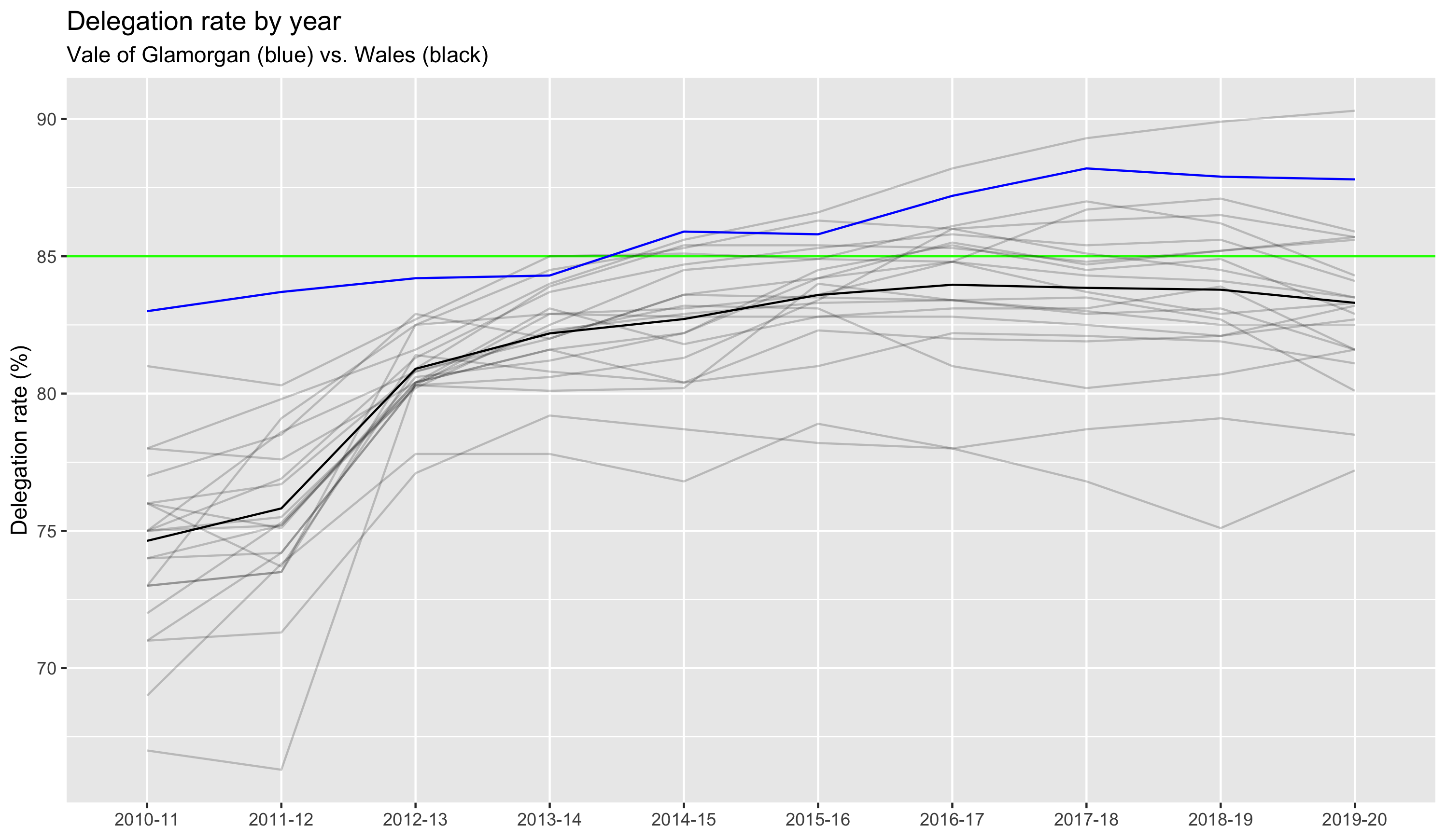 Rate of delegation in Vale of Glamorgan in 2020–21 = 87.6% (2nd highest in Wales)